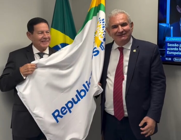 Provocação? Depois de se filiar ao Republicanos para disputar as eleições deste ano, o senador Angelo Coronel publicou um vídeo ao lado do também senador Hamilton Mourão (Republicanos-RS) e disse: “alguém pra me proteger”, referindo-se a patente de Mourão, que é General de Exército da reserva.